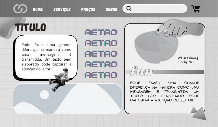 Equilíbrio entre elementos visuais e espaços em branco Caracterizado pelo layout simétrico e ter mais textos do que imagens