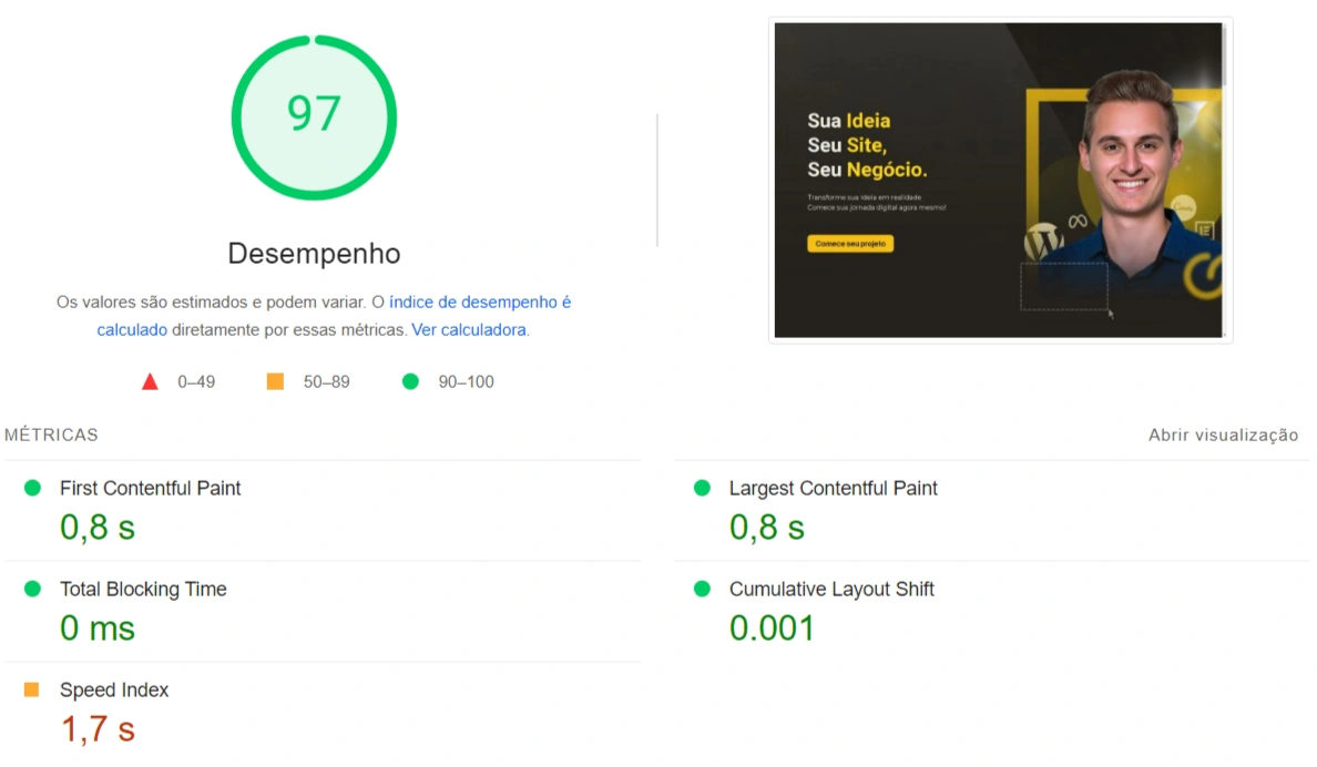 Para garantir que seu site esteja realmente otimizado, utilizamos o Google PageSpeed Insights. Ele é uma ferramenta fornecida pelo Google que mede a performance de um site em dispositivos móveis e desktops. Ao analisar uma URL, a ferramenta executa testes que simulam o comportamento de um visitante na página.